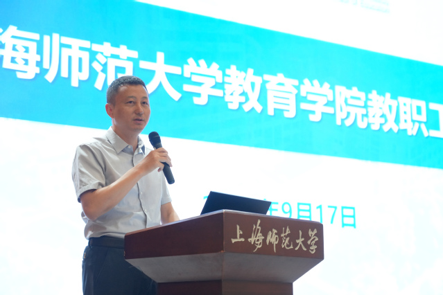 院长黄海涛充分肯定了暑假以来我院教师在教学竞赛、科研立项、课程建设、社会服务等方面取得的优异成绩。他结合时代挑战、上海高等教育综合改革方案和学校发展定位,对学院新学期重点工作作出全面部署。黄院长指出,要科学谋划“十五五”发展规划,锚定教育学“双一流”的学科建设目标,推动学院发展再上新台阶。人才培养方面,要迭代升级本科专业,动态优化学科点,构建AI时代教师教育课程体系,探索人才培养贯通模式,强化师范生核心素养,增强对学生的就业升学的系统指导;学科建设方面,持续建设高水平学科平台,积极调整学科方向,做强优势学科和新兴学科,加强紧缺学科师资引培,推进实施学科攀登计划;科研方面,进一步总结全国教科规划项目等国家级课题申报立项经验,整合学科资源服务教师申报高级别课题,开展有组织科研,打造高水平科研团队,孵化标志性成果;社会服务方面,对接国家发展战略和上海社会发展需求,加强和各级各类学校、教育管理部门的合作,提供学科专业力量,不断扩大学院学术影响力和社会影响力。