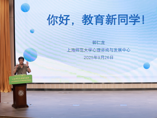 吴跃东在致辞中向新生表示热烈欢迎。他指出,同学们选择教育学科深造正值国家全面推进教育强国建设的关键时期,这一选择彰显了新时代青年的责任担当。吴书记简要介绍了学院深厚的办学积淀及其在服务国家战略和上海教育改革发展中的重要使命,并围绕“如何成为一名符合时代要求的教育研究者”这一主题,对新生提出三点期望。他勉励同学们将个人成长融入国家发展大局,坚持守正创新,夯实专业根基,努力成为教育强国的践行者、教育改革的推动者和终身学习的示范者。他表示,学院将永远是同学们坚实的后盾,全力支持每一位学子的成长与发展。