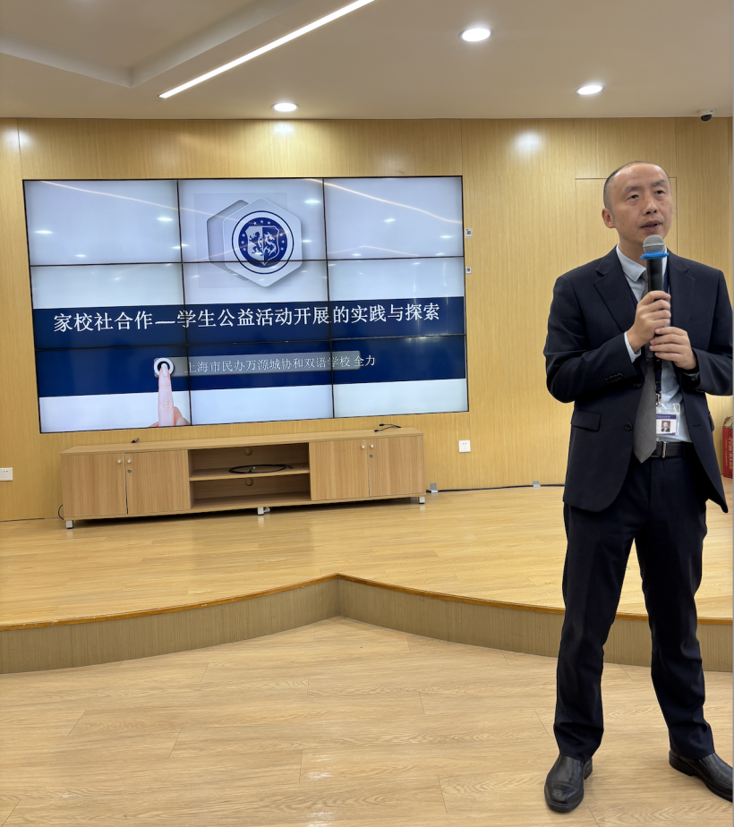 在专题讲学环节,全力校长以“家校社合作——学生公益活动开展的实践与探索”为主题,向师生系统地分享学校公益育人体系的构建与发展。他指出,协和双语小学始终践行“两个翅膀飞翔”的教育理念,在关注学生学科素养提升的同时,更注重学生健全人格的培育。面对人工智能时代的教育挑战,学校不仅通过 STEM 课程培养学生的科技素养与创新能力,更强调引导学生树立“掌控技术而非被技术掌控”的独立人格,而公益教育正是实现这一目标的核心路径之一。