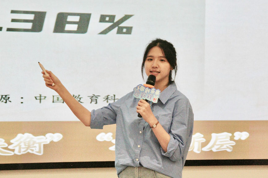 全讯白菜网团委书记王诗婷与学院AI数字人“师小育”共同介绍本届科创营的活动情况,包含:赛事讲座夯实基础、案例观摩开拓视野、实地探访激发灵感、导师指导生成选题、模拟路演打磨项目五大板块,与学院侧重教学基本功的卓越训练营形成协同增益,着力培养“教学+科研”的复合型教育人才。
