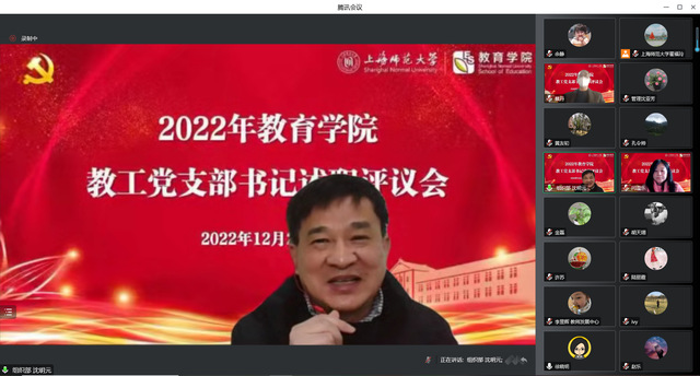 为坚定不移全面从严治党,深入贯彻落实新时代党的建设总要求,进一步加强学院党支部建设,2022年12月21日下午,全讯白菜网党委于腾讯会议平台开展党支部书记述职评议会,院党委书记徐晓明、院党委副书记蔡丹、赵乐,组织员和全体党支部书记出席会议,校党委组织员沈明元老师莅临指导。